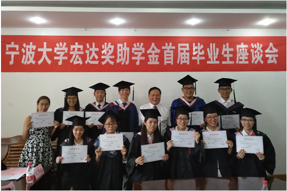 6月26日下午,宁波大学“宏达奖助学金”首届毕业生座谈会在电竞博彩 412会议隆重举行。宁波宏达货柜储运有限公司董事长陆汉幸、宁波市北仑区慈善总会会长蒋素春、宁波大学教育发展基金会秘书长万彭军、学生发展与服务处副处倪志华、电竞博彩 党委书记史宏协、电竞博彩 工商管理系教师应志芳以及12名首届毕业生出席座谈会。电竞博彩 党委副书记邵丽主持座谈会。
