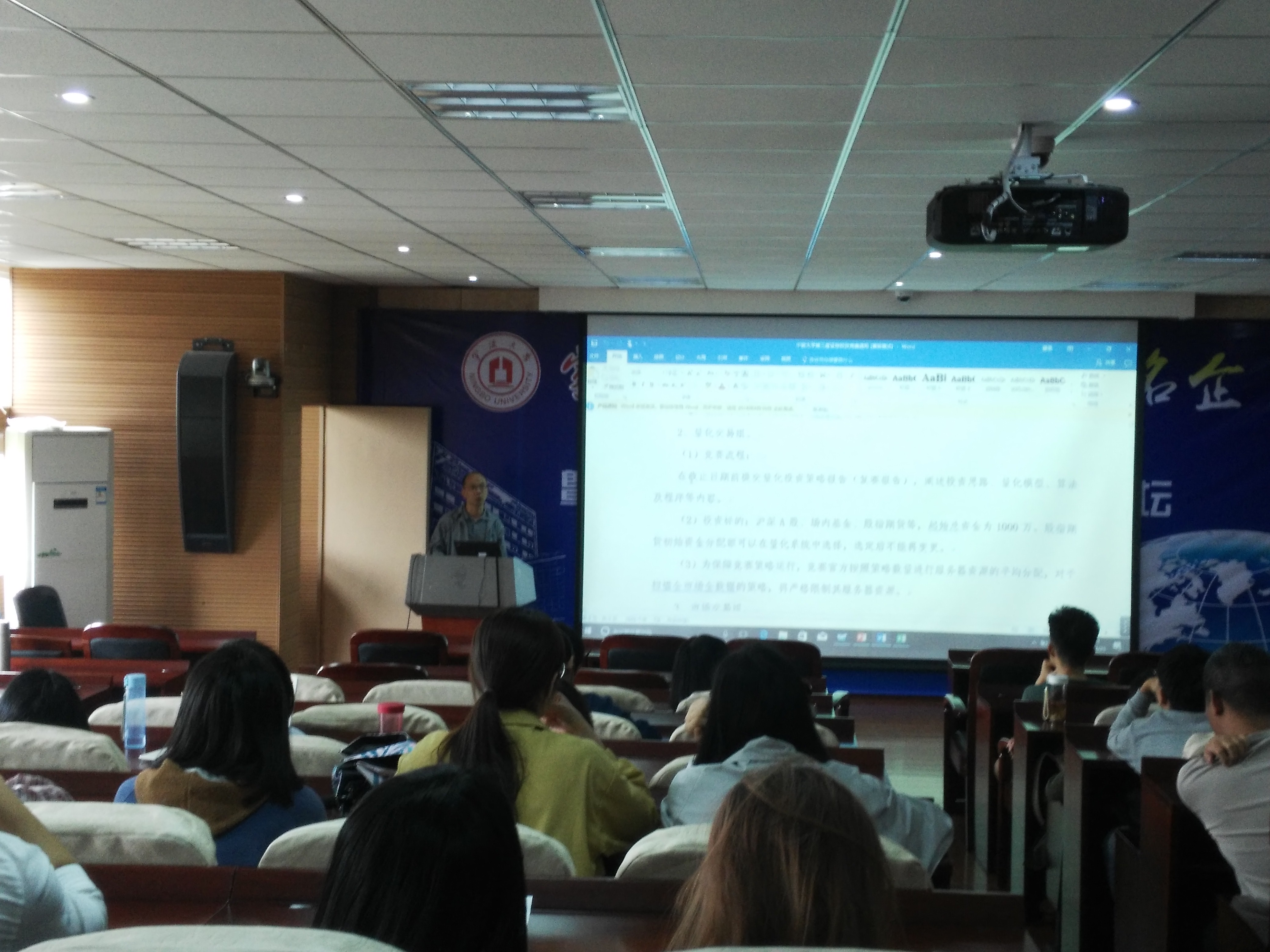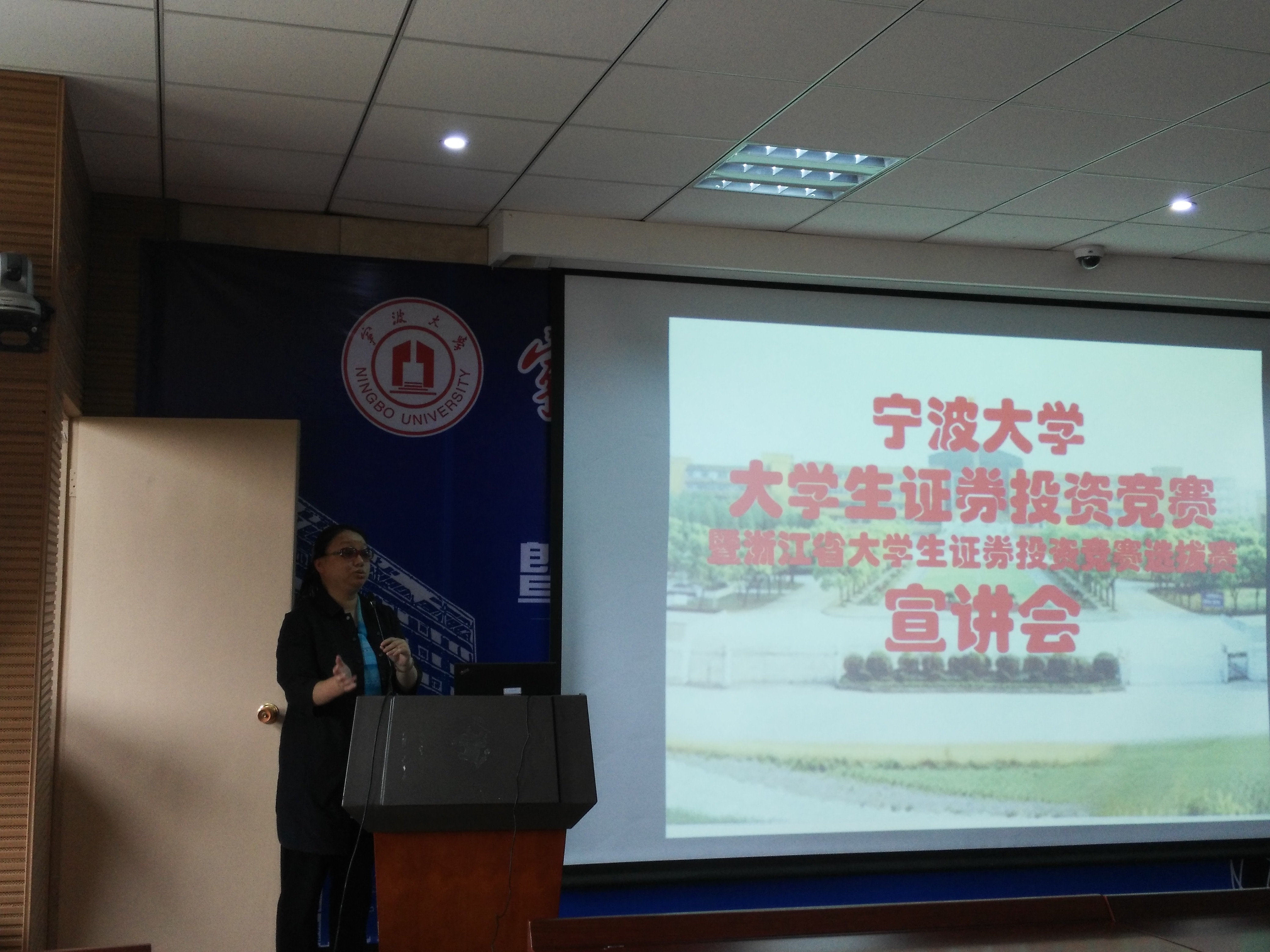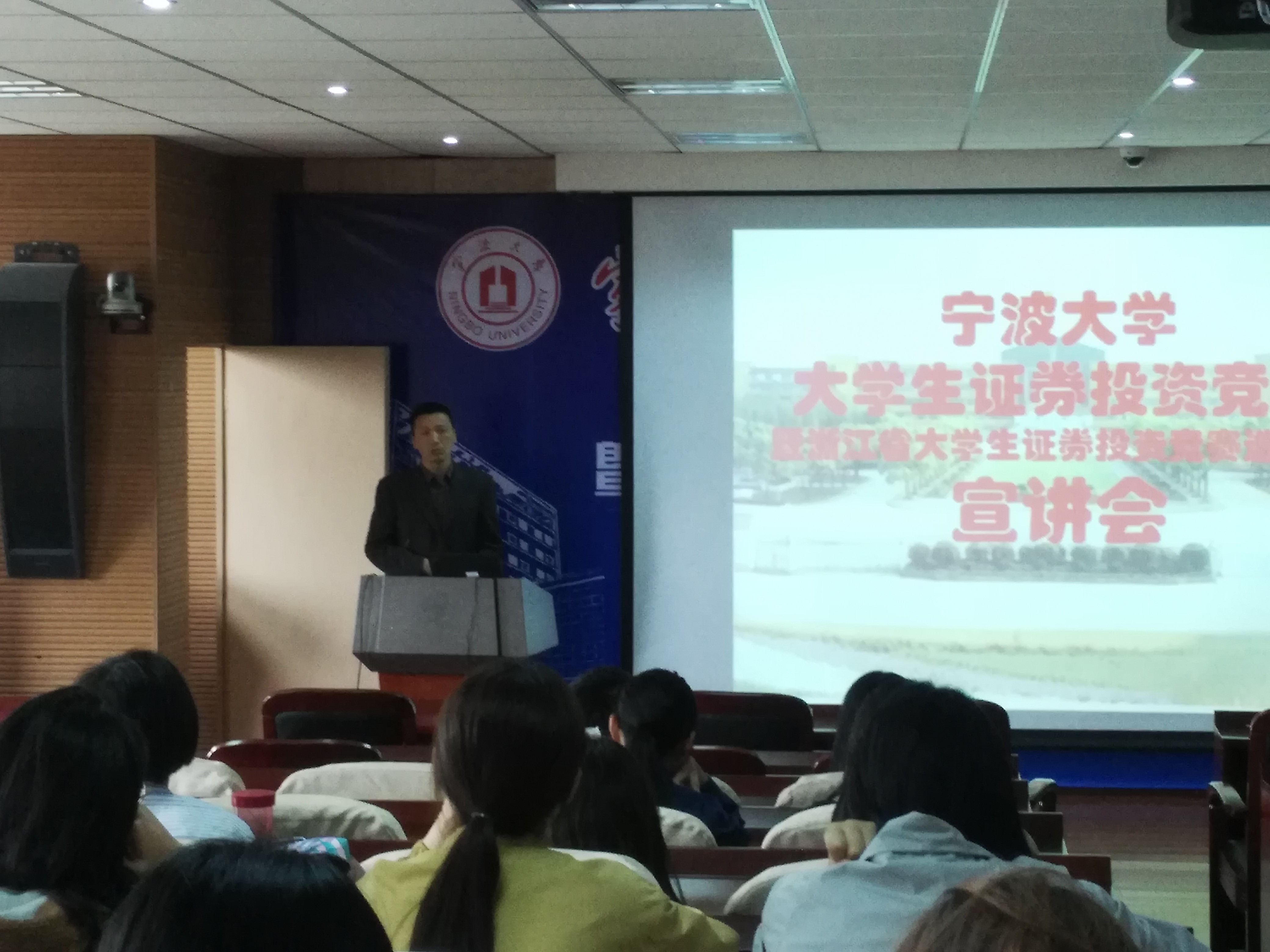 4月25日下午,金融系在电竞博彩 109会议室举行了宁波大学第三届大学生证券投资竞赛暨 “东北证券同花顺杯”第四届浙江省大学生证券投资竞赛选拔赛宣讲会,电竞博彩 师生约80余人参加了本次宣讲会。电竞博彩 院长助理朱一鸿老师出席并致辞,宣讲会由金融系主任刘慧宏老师主持。