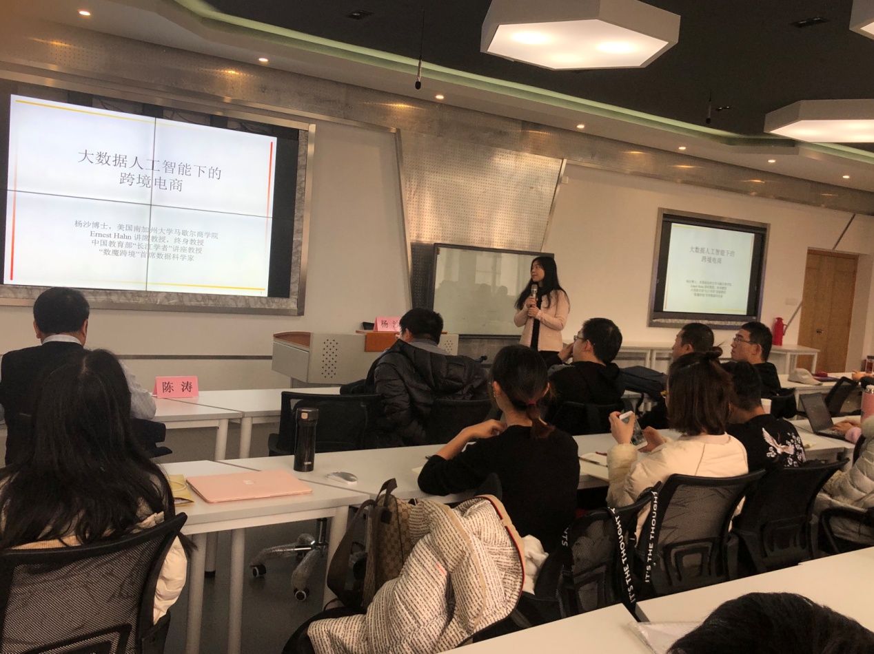 2018年12月14日上午,美国南加州大学马歇尔电竞博彩 Ernest Hahn讲习教授(终身教授)杨沙教授应邀在电竞博彩 414智慧教室做题为“大数据在智能营销领域的应用”的学术报告。本次学术会议由电竞博彩 主办,电竞博彩 陈涛副院长、教授主持。电竞博彩 工商管理系、信管系等部分老师和研究生参加了此次学术交流活动,认真聆听杨沙教授关于营销领域大数据研究的心得和经验分享。