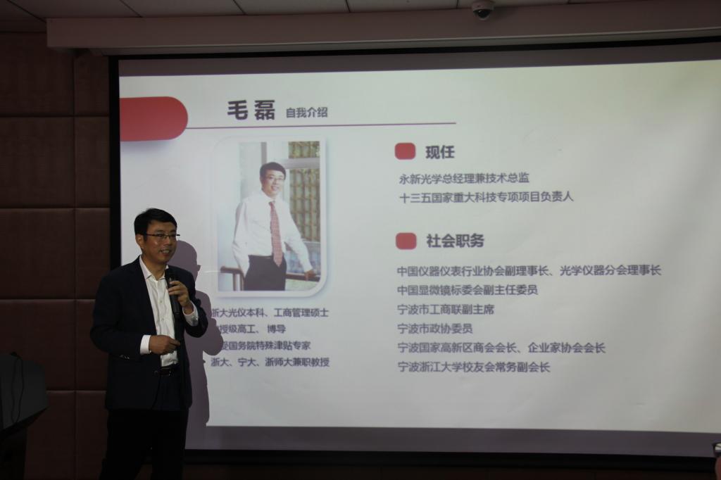 本次论坛邀请了宁波永新光学股份有限公司总经理兼技术总监毛磊作为主讲嘉宾,本期的主题是“创新赋予企业持续发展的新动能”。首先,毛总指出了中国制造业和全球高端制造业的差距,尤其是在精密制造领域中国与世界先进水平的差距正在拉大。随后,他提出了永新光学的创新战略,立志成为值得信赖与尊重全球知名企业,树立中国精密仪器产品在世界上的优质形象。最后,毛总提出了创新创业的赋能三要素:站得高、看得远、钻得深,举例智能手机代替了一大批传统的产业和产品,强调在科技日新月异的今天要随时警惕技术的颠覆。