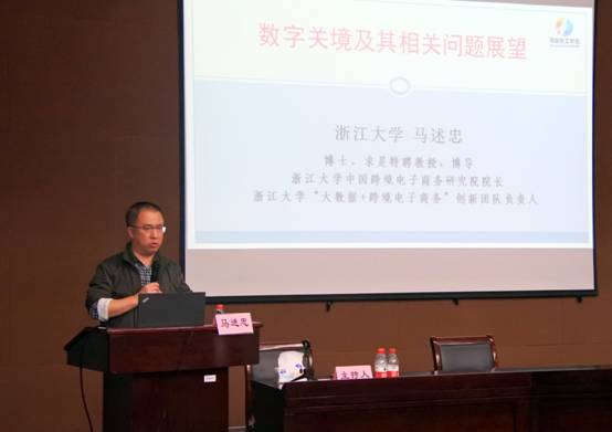 浙江大学中国跨境电子商务研究院院长及浙江大学“大数据+跨境电子商务”创新团队负责人马述忠教授分享了《数字关境及其相关问题展望》的讲演。马述忠教授认为,全球电子商务创新的必然选择就是数字关境,并从六大方面分析数字关境;首先,数字关境为什么是全球电子商务创新的必然选择?第二,跨境电商服务平台为什么是数字关境构建的推动力量?第三,单一窗口为什么是数字关境构建的基础工程?第四,世界电子贸易平台为什么是数字关境构建的全球愿景?第五,新型基础设施为什么是数字关境构建的技术支撑?最后,数字关境构建的实施方案。