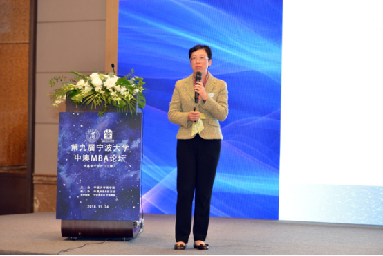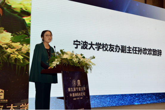 随后,宁波大学校友办公室副主任孙欢欢上台致辞。她向嘉宾与校友们介绍了宁波大学近年来的发展情况,学校在学科、学位点建设、高层次人才引进、高端科研创新平台建设和办学空间拓展等方面所取得的成绩。她指出,中澳MBA项目是我校对外合作办学的一张“金名片”,项目经过18年的发展,在造就具有全球视野又深谙中国实践的管理精英上取得了良好的口碑和效应。她对中澳MBA校友会给予高度评价,认为中澳MBA校友会是宁波大学47个地方、行业校友组织中熠熠生辉的一颗明星,其广阔的视野、开放的姿态、团结向上的氛围和丰富高端的活动,为各界校友称道,校友们也通过这个平台,为事业发展注入强劲动力。她祝愿第九届中澳MBA论坛成功举办,进一步为校友们搭建相互学习、资源共享、对接合作、抱团发展的平台。