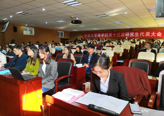 会上,邵佳上台致开幕词,她对我院研究生会本年度的工作和发展给予了充分肯定,同时也预祝我院第十三次研究生代表大会顺利召开。接着院党委副书记邵丽在讲话中肯定了研会过去所做出的成绩,并对研会的未来发展寄予了积极的展望。