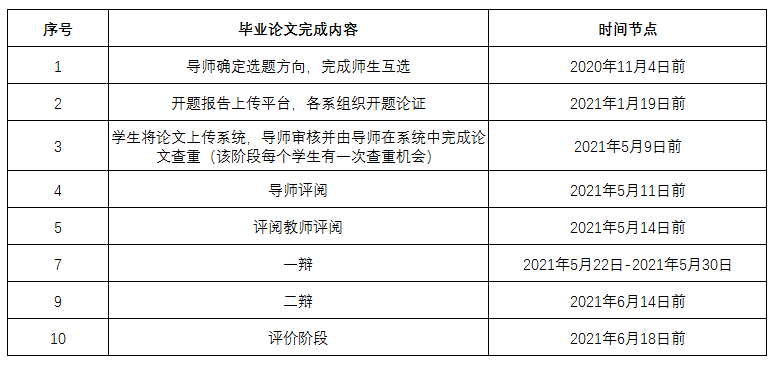 电竞博彩 2021届本科毕业论文主要工作时间节点