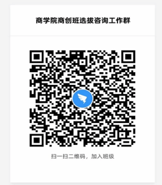 咨询钉钉群(班级号:GNAC4132)二维码:(商创班咨询工作群,入群请备注班级、姓名、学号)