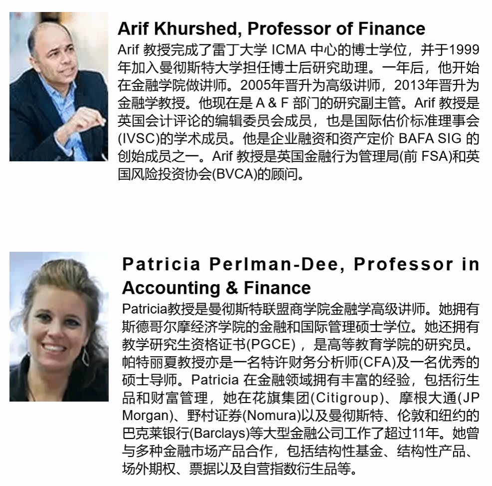 项目中的专业课程均为曼彻斯特大学电竞博彩 会计与金融专业本科学生所入读的专业必修课程,全程由曼彻斯特大学电竞博彩 的全职教授授课,使得参加项目的同学可以获得最原汁原味的曼大学习体验。