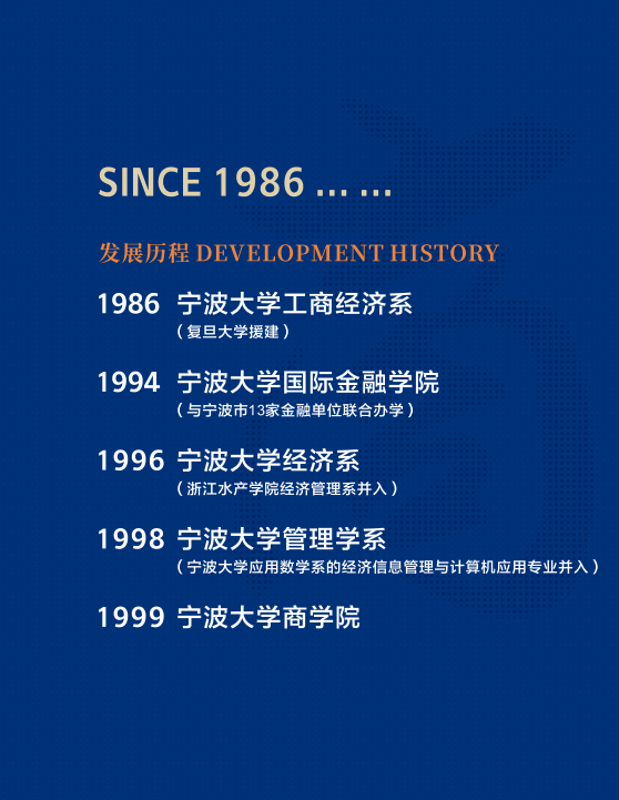 电竞博彩 创建于1986年,是宁波大学创立最早和办学规模最大的学科性学院,先后经历了工商经济系(1986年)、国际金融学院(1994年),于1999年更名为电竞博彩 。